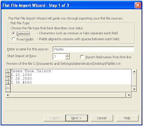 - Select the required Flat file and Import it. When you import you will get the below screen